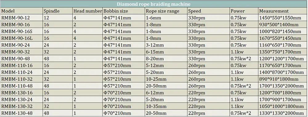 Mesin ini cocok untuk memproduksi berbagai ukuran dan bahan tali kepang 8, 16, 24, 32,48 helai, yang banyak digunakan pada tali sepatu, tali pancing, tali port, tali bungee, tali lompat, tali panjat, tali hewan peliharaan, dll. Mesin ini dilengkapi dengan perangkat penghenti benang secara otomatis dan konverter frekuensi. Mesin ini memiliki karakteristik efisiensi tinggi, keamanan, dan pengoperasian yang mudah.