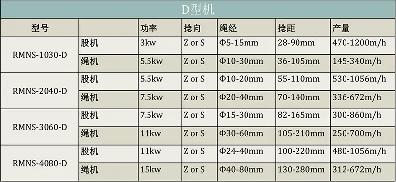Mesin ini dapat memutar berbagai ukuran HDPE, PP monofilamen, benang pita PP, film split PP, benang poliester, benang nilon, benang katun, sisal, rami hingga 3,4 atau 6 helai tali. Dilengkapi dengan fungsi teknologi tali penyesuaian secara elektronik. Mesin ini mengintegrasikan pembuatan dan penyelesaian tali, memiliki karakteristik struktur sederhana, perawatan mudah, penerapan ekonomis.