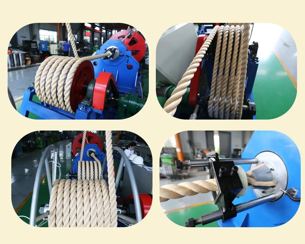 Mesin D-Rope dapat memelintir berbagai ukuran HDPE, PP monofilamen, benang pita PP, PP split-film, benang poliester, benang nilon, benang katun, sisal, rami hingga tali 3,4 atau 6 helai. Dilengkapi dengan teknologi tali fungsi penyesuaian secara elektronik. Mesin ini mengintegrasikan pembuatan dan penyelesaian tali, memiliki karakteristik struktur sederhana, perawatan mudah, penerapan ekonomis.