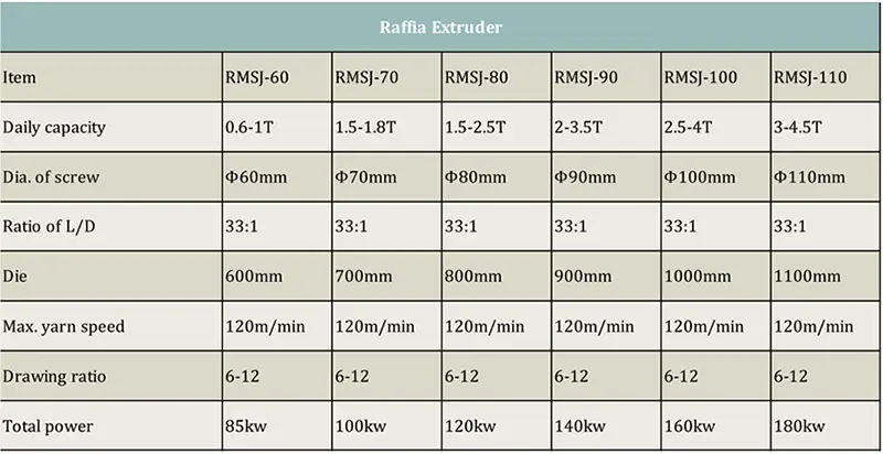 Mesin ini dapat menghasilkan berbagai ukuran PP, HDPE virgin atau split-film daur ulang, film datar, pengisi kabel yang banyak digunakan dalam benang pengikat, benang baler, benang pengepakan, tali plastik. Mesin ini memiliki karakteristik umur panjang, mudah pengoperasian, perawatan mudah. Produk memiliki kekuatan tinggi hingga 5,5g/hari.